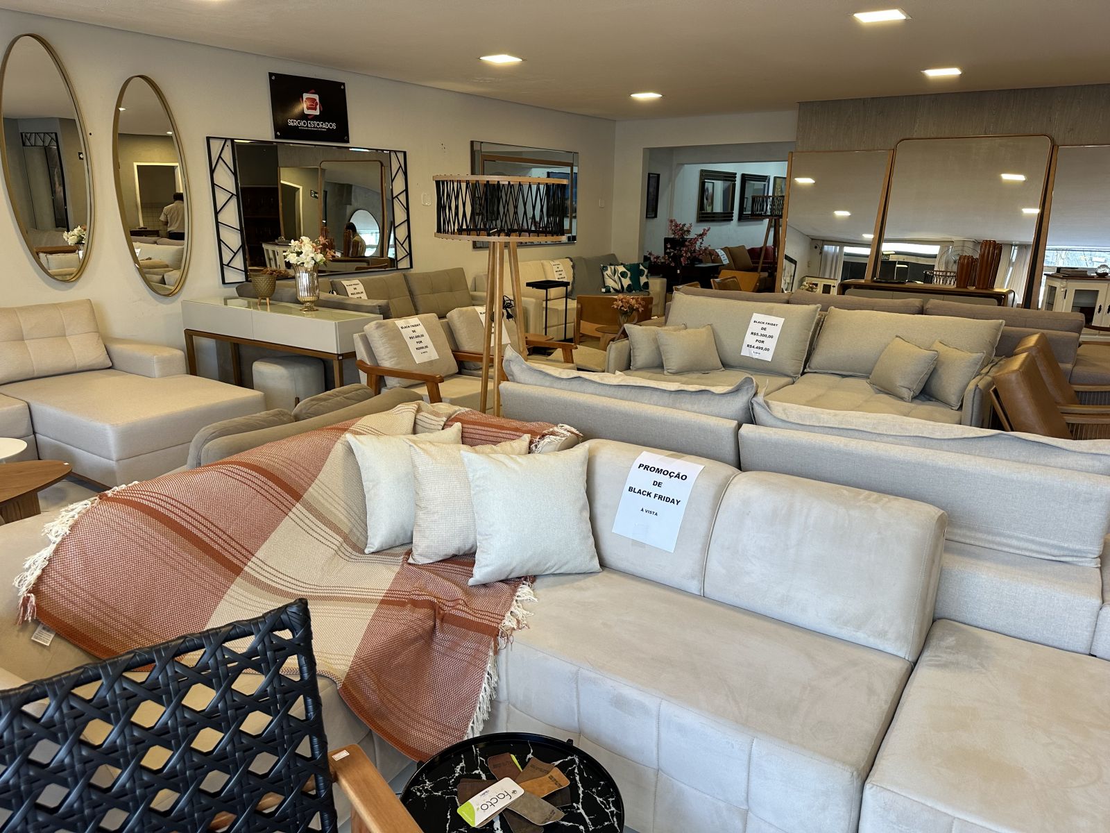 A Sérgio Estofados iniciou sua campanha de Black Friday oferecendo descontos de até 50% em diversos produtos, incluindo sofás, poltronas, pufes e serviços de estofamento sob medida. A empresa destaca que, por ter fabricação própria, consegue garantir preços mais acessíveis e qualidade superior.
