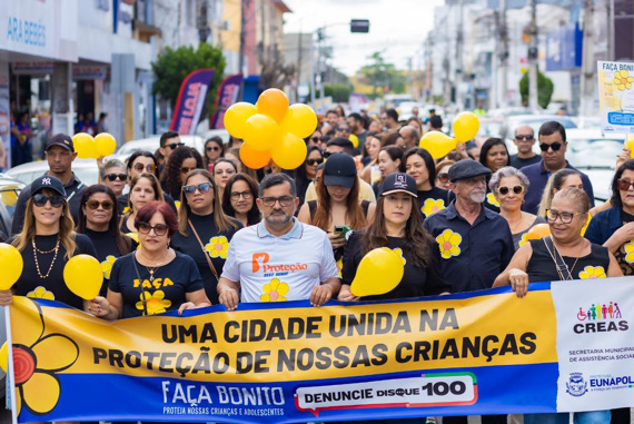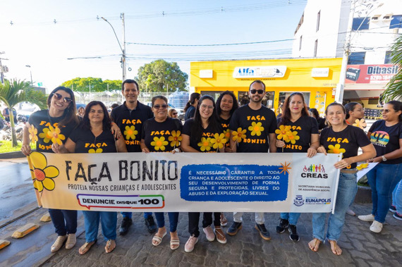 Em um forte ato de conscientização contra o abuso e a exploração sexual de crianças e adolescentes, a Prefeitura de Eunápolis, por meio da Secretaria Municipal de Assistência Social, promoveu na manhã desta sexta-feira (23) uma caminhada alusiva à campanha nacional “Faça Bonito”. A mobilização percorreu a Avenida Porto Seguro, no centro da cidade, e reuniu ampla participação da sociedade civil e do poder público.