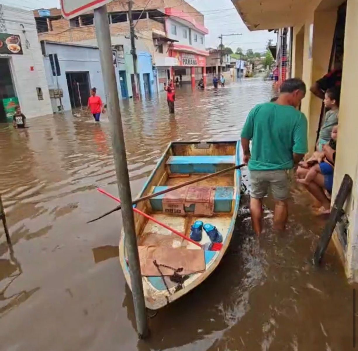 A situação é crítica no município de Medeiros Neto, no extremo sul da Bahia. Após o registro de cerca de 200 milímetros de chuva no último fim de semana, os rios Alcobaça e Água Fria continuam subindo nesta terça-feira (3), aumentando o risco de novos alagamentos.