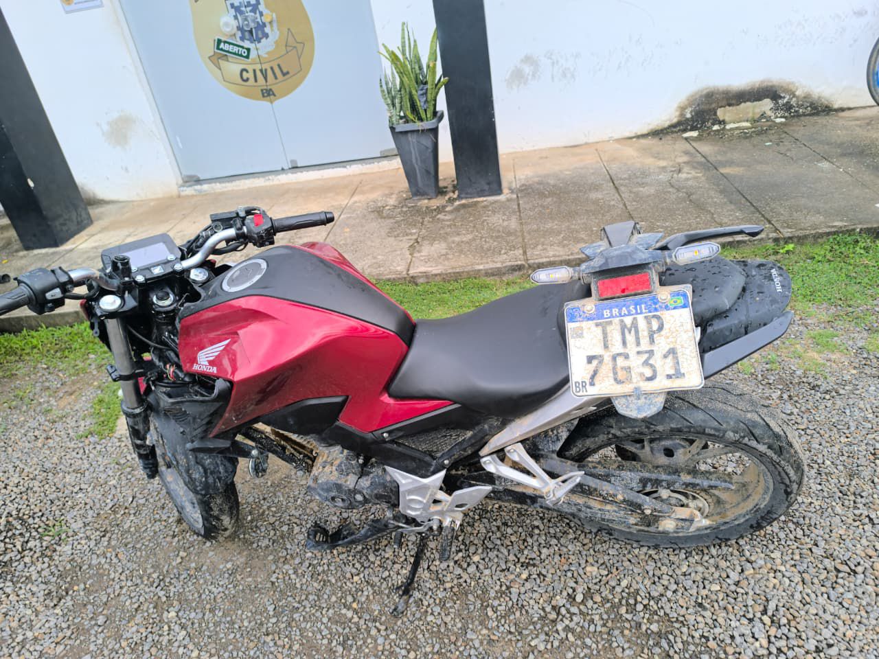 O veículo, uma Honda/CB300F Twister ABS vermelha, havia sido roubado anteriormente no município de Porto Seguro, conforme apontou a consulta nos sistemas policiais.