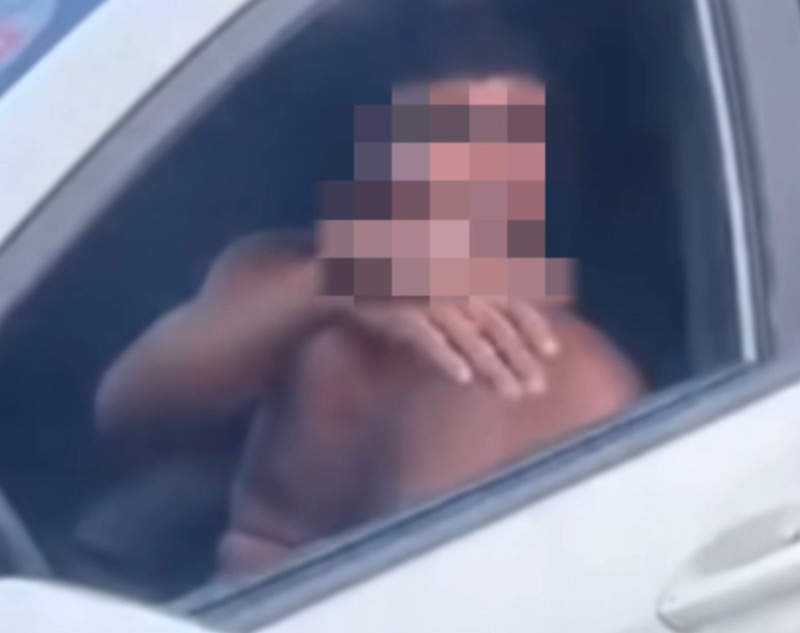 Homem nu em surto psicótico quebra vidro e adentra em carro estacionado