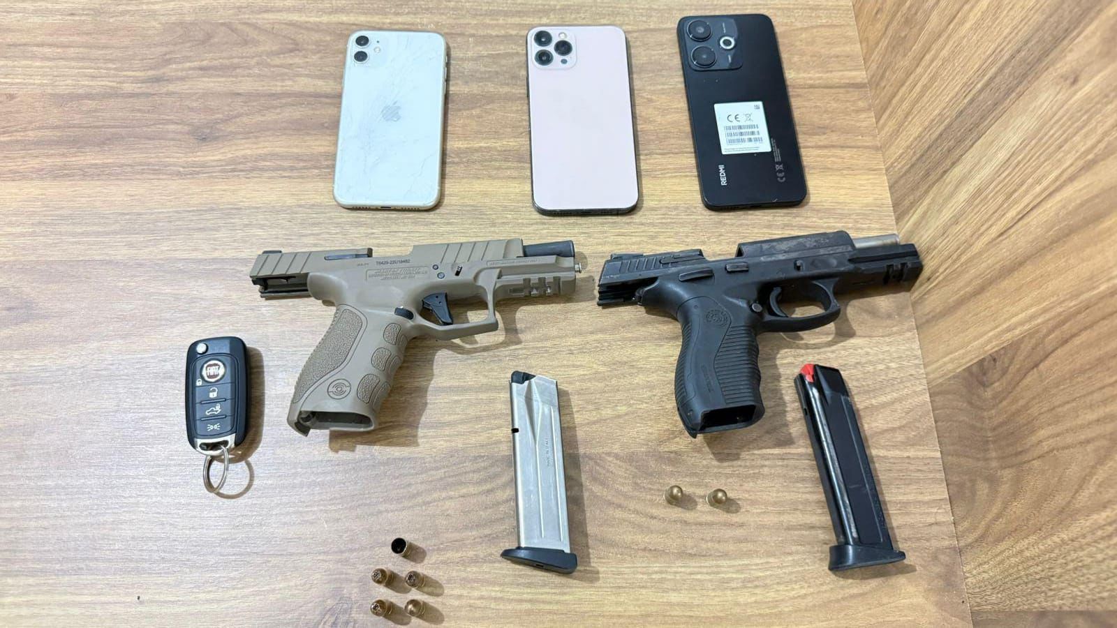 • Duas pistolas, sendo uma calibre 9mm e outra Taurus modelo 838 com numeração suprimida;