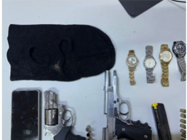 Com eles, a PM apreendeu uma pistola, um revólver, quatro relógios, sete cartuchos de pistola intactos, quatro munições de revólver três deflagradas, uma balaclava (“toca ninja”), um celular e um carregador de pistola com munições.