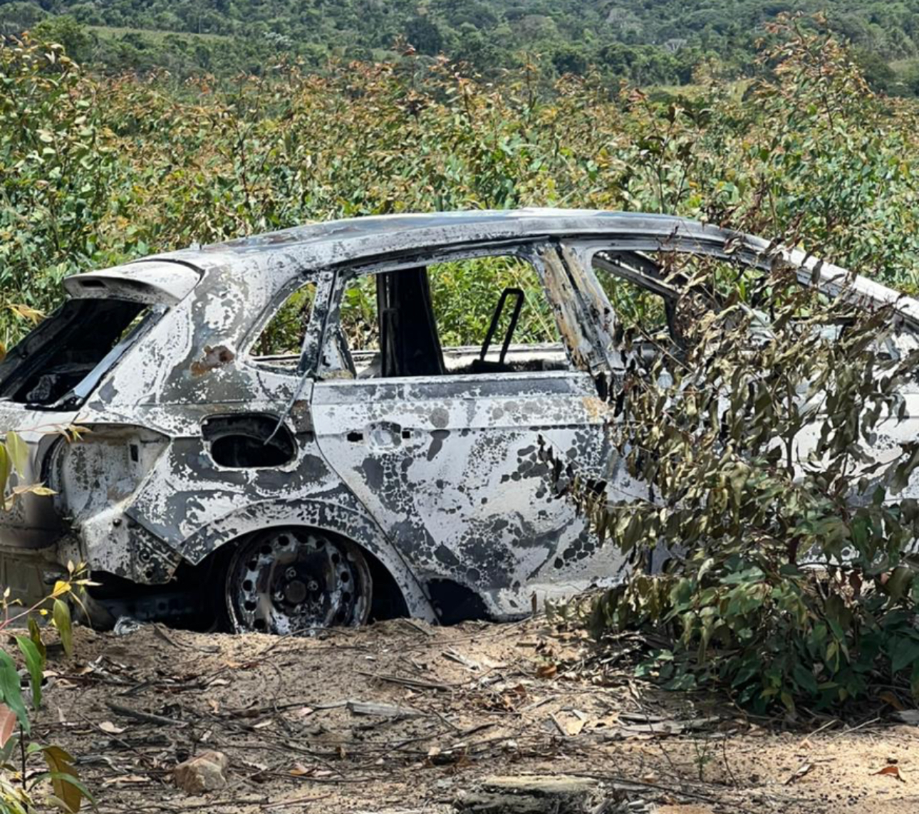 Também foi informado à polícia que populares relataram a existência de um veículo incendiado em uma estrada próxima a uma torre de transmissão, no sentido da localidade conhecida como Agrovila II. Conforme o depoimento, o motorista costumava utilizar veículos alugados para trabalhar, já que havia vendido o automóvel próprio.
