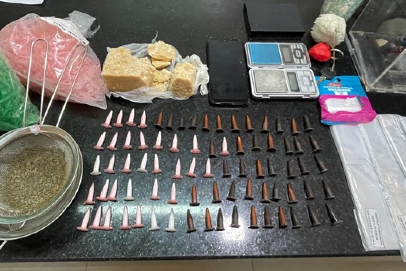 A dupla foi interceptada na Rua Campos Sales. Durante a abordagem, um dos envolvidos, menor de idade, tentou se desfazer de uma sacola que continha cerca de 300 gramas de crack. O outro suspeito foi localizado dentro de uma residência, onde os policiais apreenderam uma mochila com 78 pinos de cocaína, duas balanças de precisão, duas peneiras e grande quantidade de embalagens plásticas do tipo ependorf, usadas para o acondicionamento de drogas.