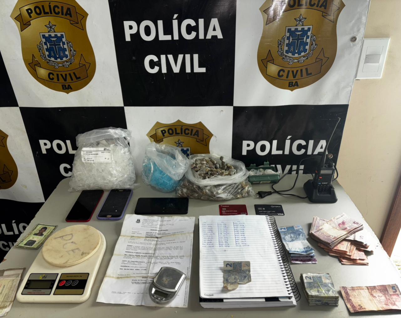 Além das prisões, equipes policiais cumpriram dois mandados de busca e apreensão no bairro Pequi. Em um dos imóveis, foram apreendidas substâncias entorpecentes, dinheiro em espécie e anotações relacionadas ao tráfico de drogas, além de outros materiais considerados relevantes para o inquérito.