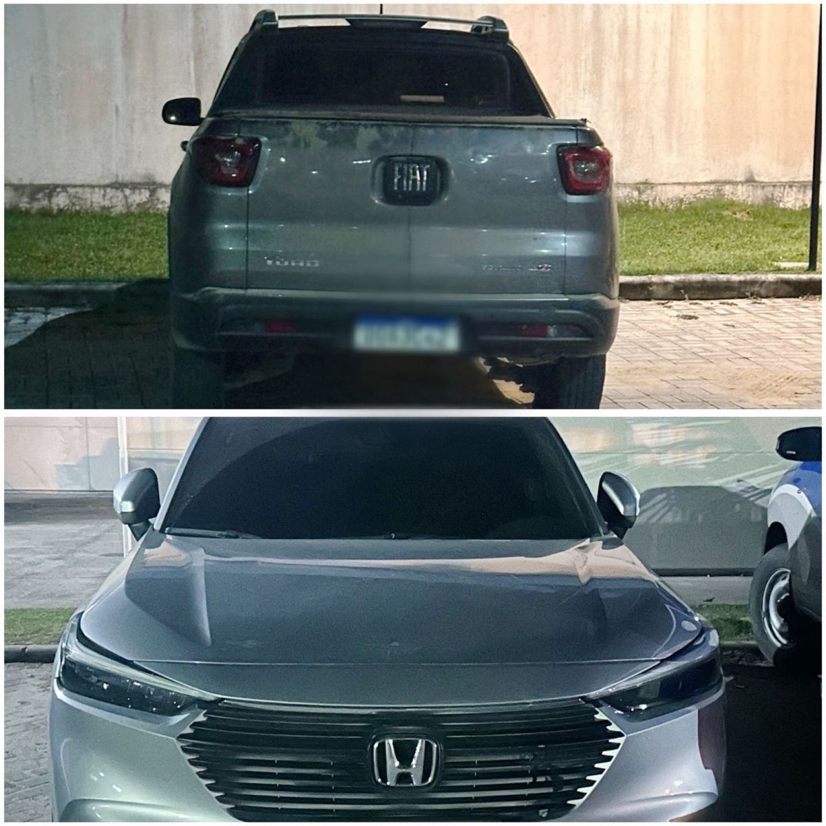 Na sequência, outro veículo suspeito foi localizado e abordado. Segundo a polícia, o carro apresentava sinais de adulteração e o condutor foi preso em flagrante, sendo encaminhado à delegacia.