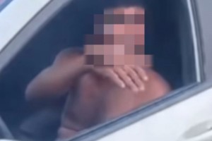 Homem nu em surto psicótico quebra vidro e adentra em carro estacionado