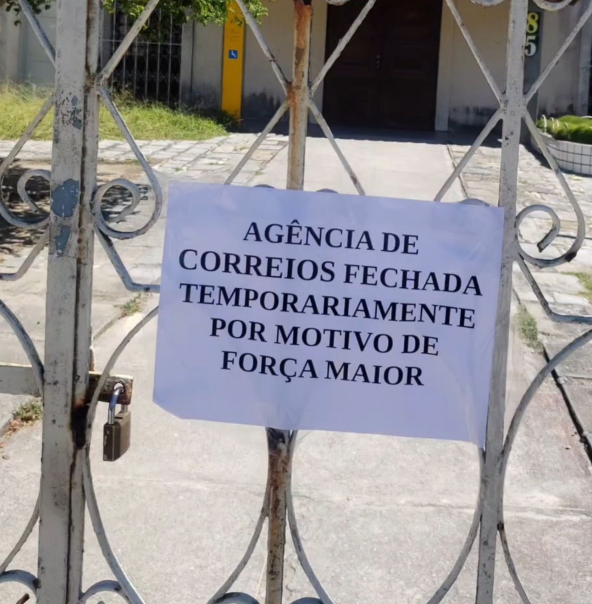 Porto Seguro amanheceu nesta segunda-feira (29) com a agência central dos Correios fechada. Um comunicado no portão informou apenas “motivo de força maior”, sem detalhar as razões ou indicar previsão de retorno.