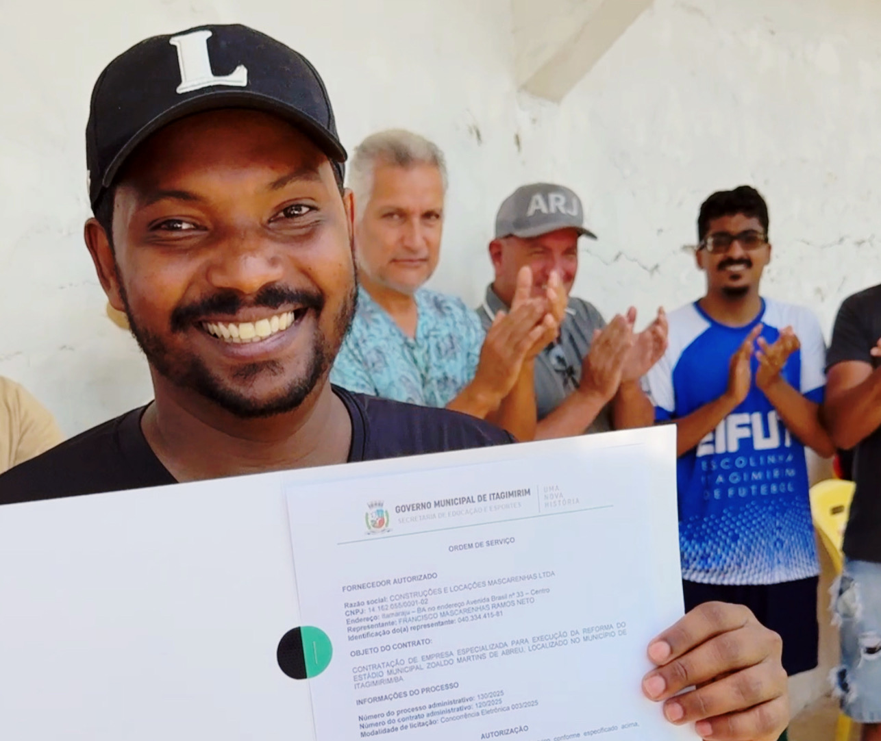 Na manhã deste domingo (19), o prefeito de Itagimirim, Luizinho, assinou a ordem de serviço para o início das obras de restauração do estádio Zoaldo Martins de Abreu, construído na década de 1980. O evento ocorreu após duas partidas de futebol que reuniram desportistas da cidade, promovendo integração e celebração do esporte local.