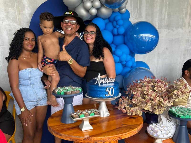 O empresário Américo celebrou seus 50 anos neste domingo (22) em Eunápolis, cercado pelo carinho de amigos e familiares. Bastante conhecido na cidade por sua atuação no ramo da publicidade e pela promoção de eventos, ele reuniu convidados em um momento especial de confraternização, alegria e gratidão pela trajetória construída ao longo dos anos.