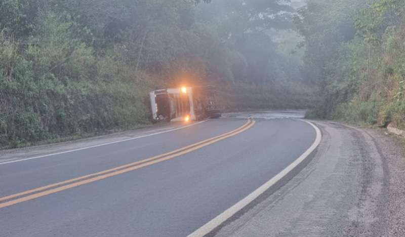 Carreta tomba na BR-101 entre Eunápolis e Itabela - Rodovia fica interditada