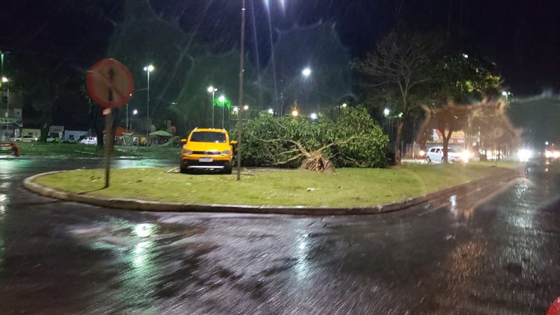 A chuva teve início por volta das 18h30, com trovões e relâmpagos, parte da cidade ficou sem energia elétrica.