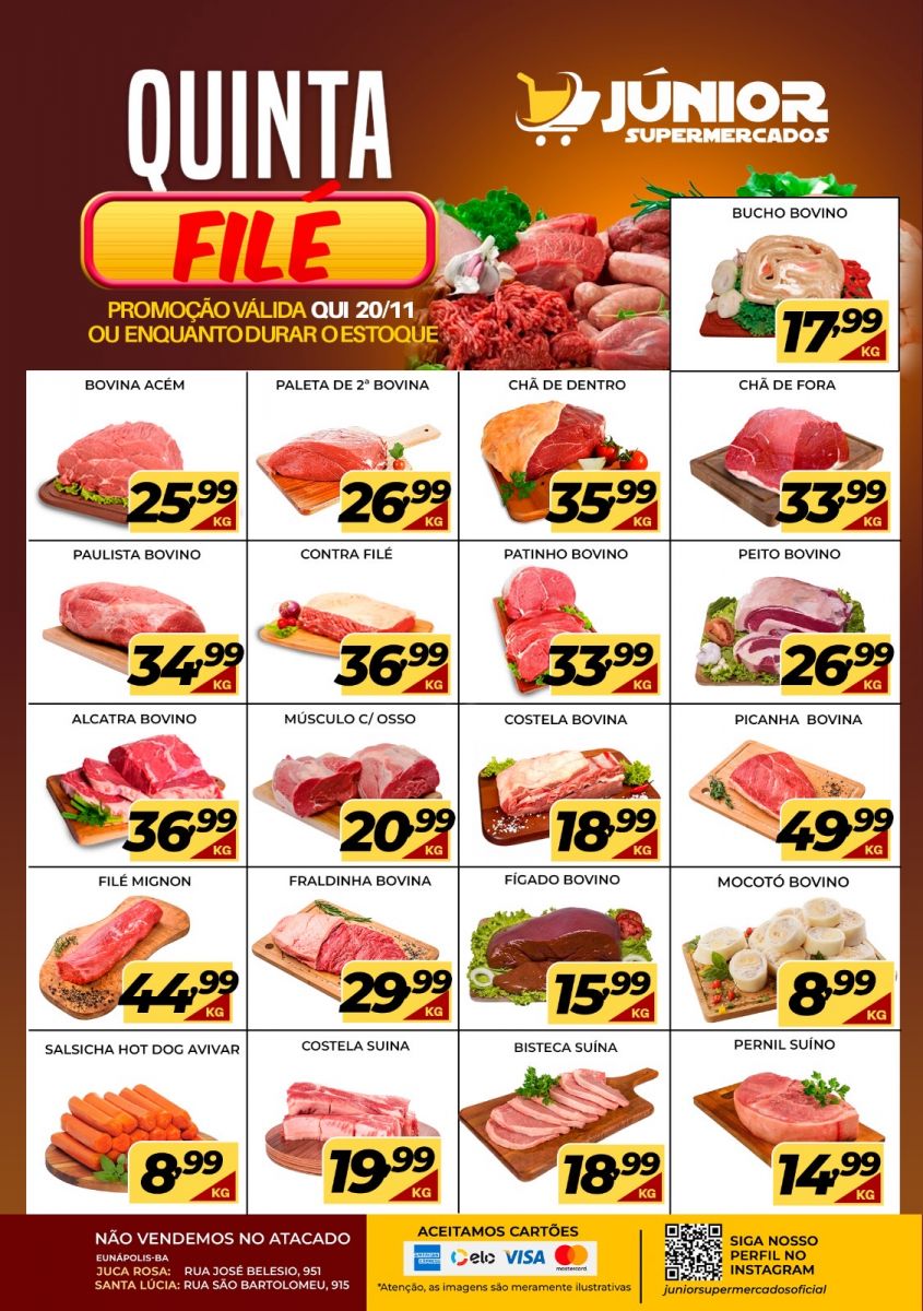 Confira as ofertas da Quinta Filé no Júnior Supermercados