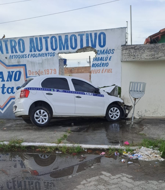 Táxi perde controle e bate em muro no bairro Santa Lúcia