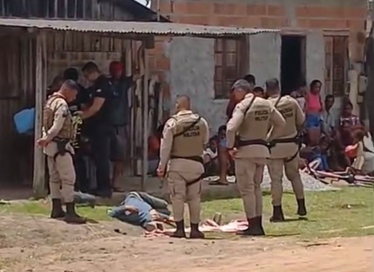 Ao chegar ao local, os policiais confirmaram a ocorrência e encontraram uma das vítimas caída ao solo dentro de uma residência. A segunda vítima foi localizada em via pública, também já sem vida, ao lado de uma arma de fogo.