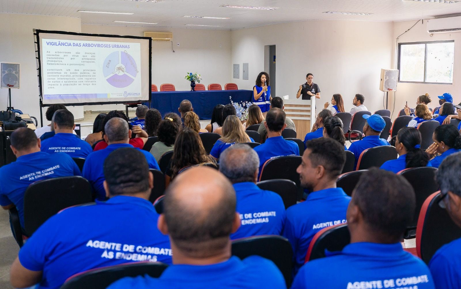 A apresentação aconteceu durante uma cerimônia voltada para servidores, reunindo agentes de endemias e demais profissionais da saúde.