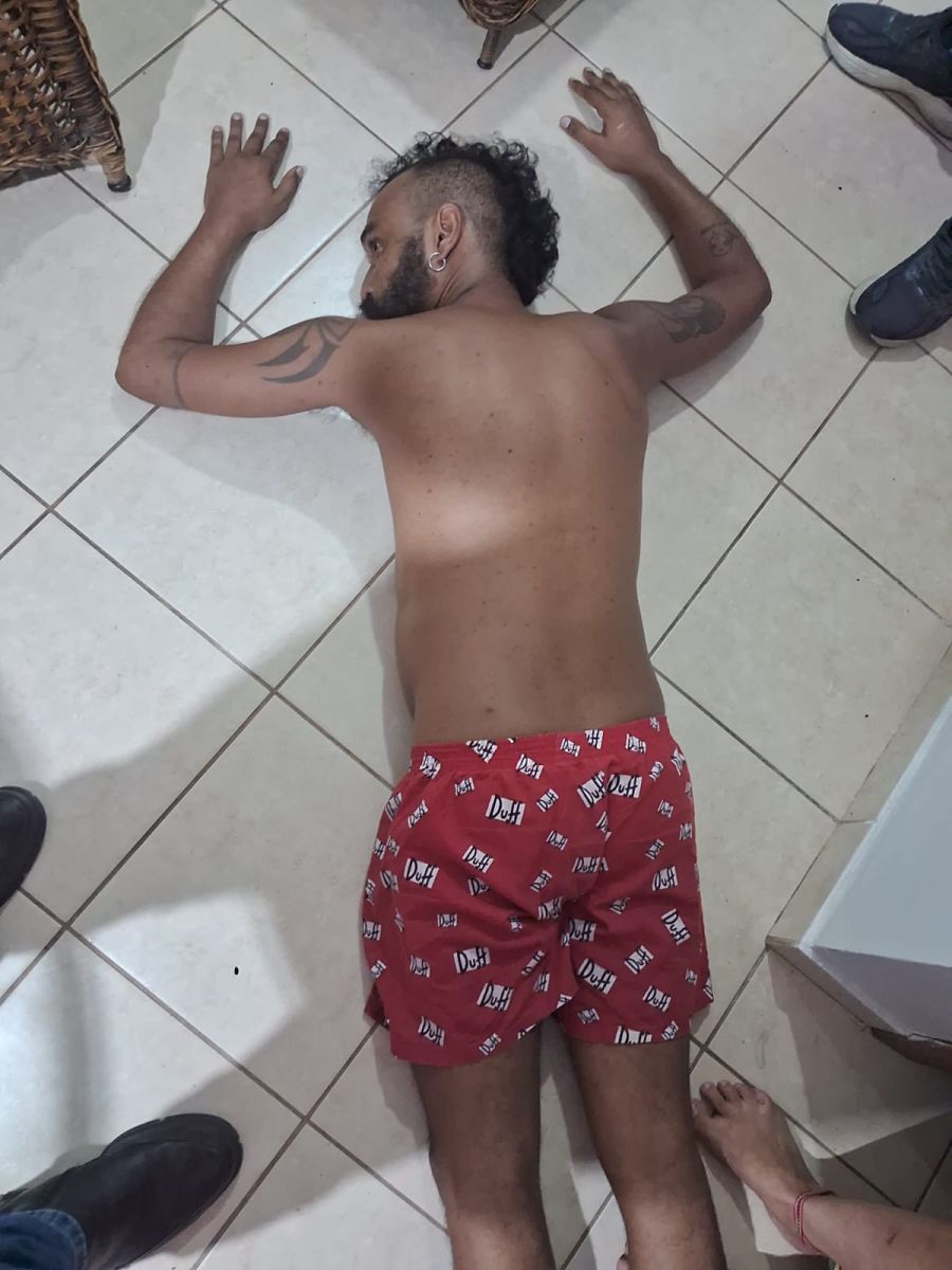 Após aproximadamente 30 minutos de negociação, o homem libertou a vítima e se entregou. Dentro da casa, os policiais encontraram diversos invólucros contendo maconha, cocaína, haxixe, além de ampolas, agulhas e um punhal.