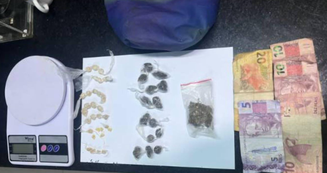 Já na noite de domingo (14/12), outra guarnição do 28º BPM se deslocava para atender uma denúncia de som abusivo na Rua Augusto Gomes, também no Moisés Reis, quando avistou um homem sentado na calçada que, ao notar a viatura, tentou dispensar uma bolsa. Durante a abordagem, os policiais localizaram uma balança de precisão, 31 pedras de crack, um pedaço de maconha pesando 8,84 gramas e 14 buchas de maconha. O indivíduo foi conduzido à Delegacia de Eunápolis, juntamente com o material apreendido.