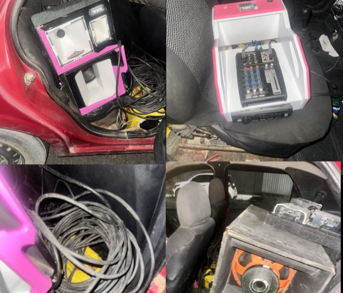 Durante a operação, os policiais flagraram um veículo modelo GM/Celta, de cor vermelha, estacionado em via pública e utilizando equipamento de som automotivo em volume excessivo, conhecido popularmente como “paredão”. A ocorrência foi registrada na Praça da Colônia, distrito do município, onde o barulho causava incômodo à coletividade.