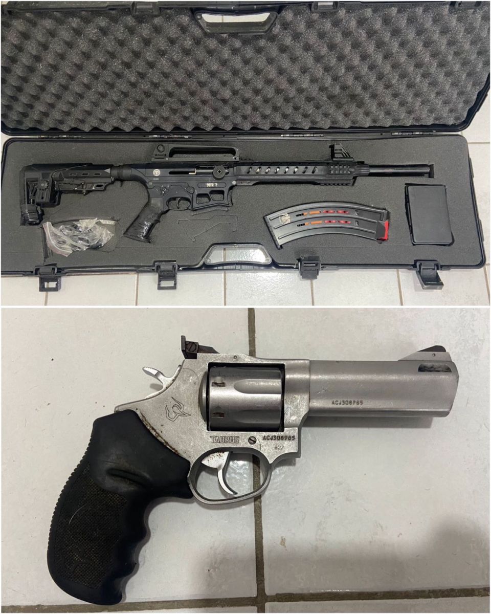 Durante as buscas na residência do investigado, os policiais localizaram e apreenderam um revólver calibre .357 e uma espingarda semiautomática calibre 12. Todo o material foi encaminhado e permanecerá sob custódia da unidade policial, à disposição do Poder Judiciário.