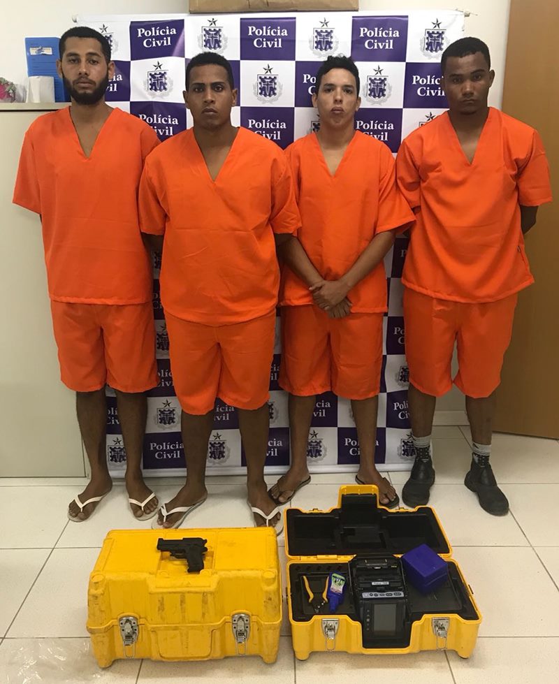 Na tarde desta quarta-feira (22) Raildo Raillan Oliveira Xavier de 25 anos, Josué de Freitas Romualdo, 20, Mayco Oliveira Silva, 20 e Vonilson Argôlo dos Santos de 25 anos foram presos pela Polícia Civil após roubarem uma empresa de provedor de internet da cidade de Porto Seguro.