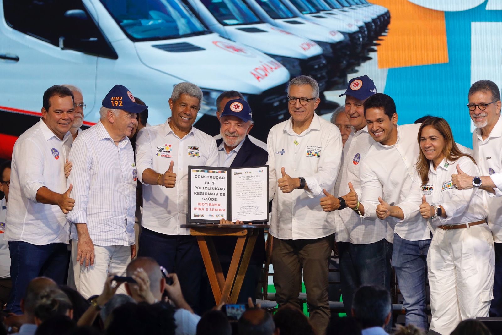 Ao lado do presidente Luiz Inácio Lula da Silva, do governador Jerônimo Rodrigues, dos ministros Alexandre Padilha e Rui Costa, além de senadores e autoridades municipais, estaduais e federais, a deputada acompanhou a entrega de 107 novas ambulâncias do SAMU, Unidades Odontológicas Móveis, kits cirúrgicos, ações de telessaúde e equipamentos destinados às Unidades Básicas de Saúde.
